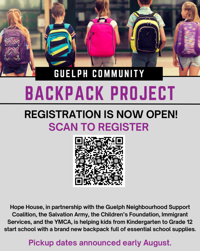 To register, scan the QR code below or visit: https://www.hopehouseguelph.ca/backpackproject