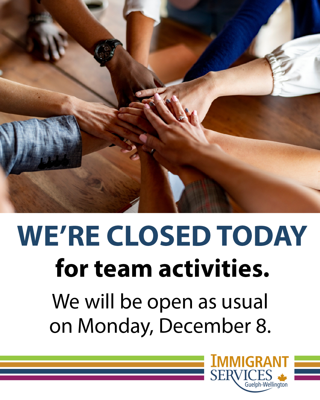 ISGW is closed today – Friday, December 5 – for team activities.
